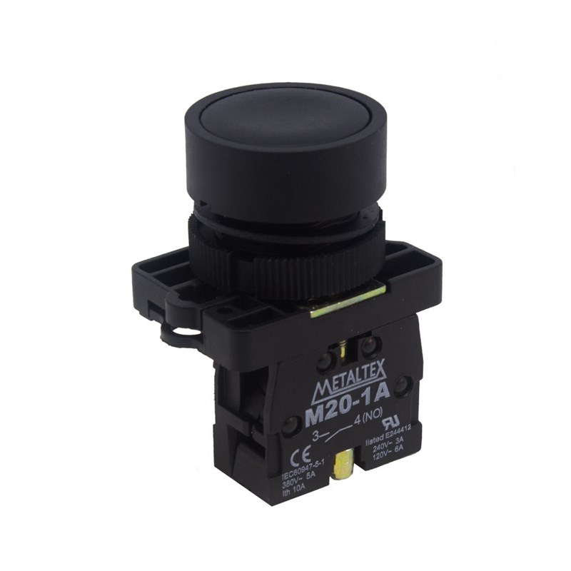 Botão de comando pulsador preto sem retenção 22MM 1NA 5A 380V P20AFR-B-1A