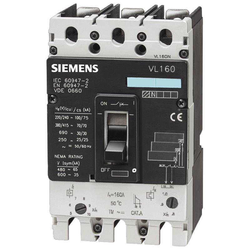 Disjuntor termomagnético tripolar caixa moldada (250…630A) 85 KA EM 380 / 440 VCA; 55 KA EM 500 VCA 3VA24636HN320AA0